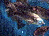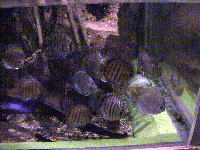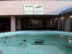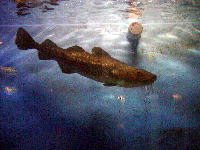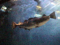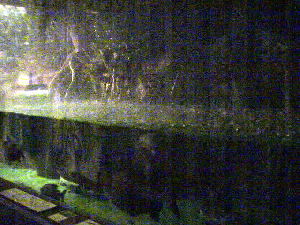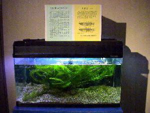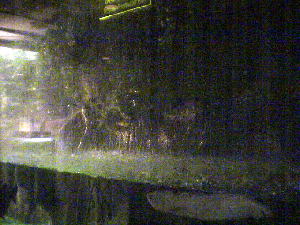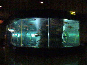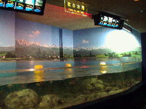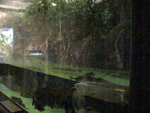 熱帯雨林を再現する水槽(観覧者がボタンを押すとスコールが降る)