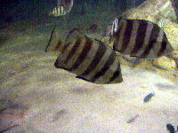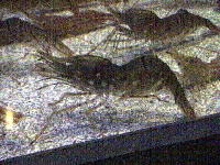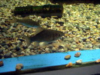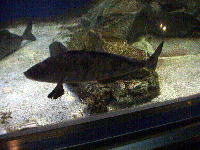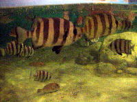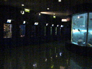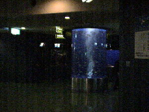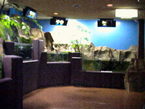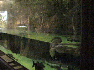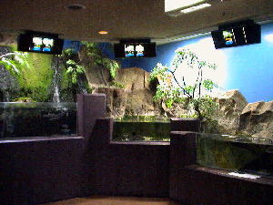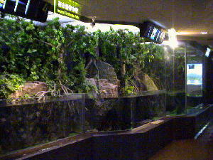 熱帯雨林を再現する水槽(観覧者がボタンを押すとスコールが降る)